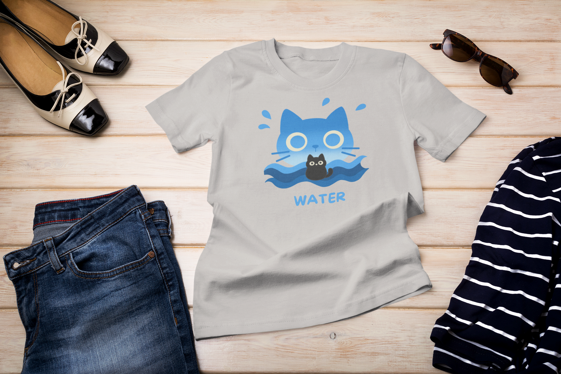 Dive into serenity with our Water Elemental Cat tee, featuring our beloved black cat Kuro. Wrapped in gentle waves and splashes of oceanic blue, this design captures the soothing power of water—perfect for those who flow through life with grace and quiet strength. Whether you're a dreamer, a healer, or just vibing with calm energy, this tee is your daily reminder to stay cool and collected.